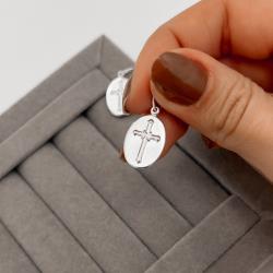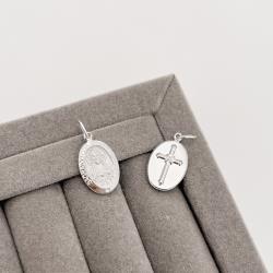 Pingente medalha dupla face Sagrado Coração de Jesus e cruz 16mm | Mya Prata