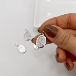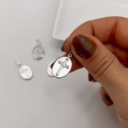 Pingente medalha dupla face Santa Rita de Cássia e cruz 16mm | Mya Prata