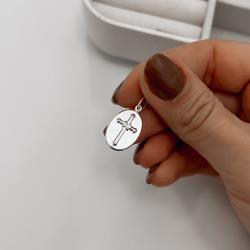 Pingente medalha dupla face Nsa. Sra. do Carmo e cruz 16mm | Mya Prata