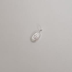 Descrição: Pingente medalha oval Nsa. Sra. das Graças com cravejado 16mm fabricado(a) em prata