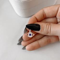 Pingente olho com zircônia azul 15mm | Mya Prata
