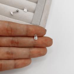 Piercing haste cadeado cravejado 6mm | Mya Prata