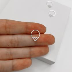 Piercing argola com coração vazado cravejado 11mm | Mya Prata