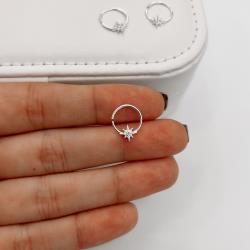 Piercing argola com estrela 8 pontas cravejada 11mm | Mya Prata