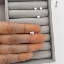 Piercing haste coração cravejado 6mm | Mya Prata