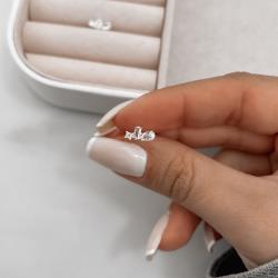 Piercing haste zircônias redonda, retangular e gota 10mm orelha direita | Mya Prata