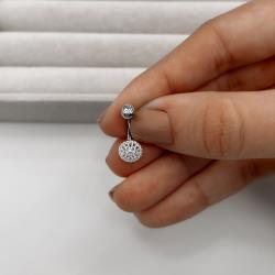 Piercing haste zircônia e flor com círculo cravejado 8mm umbigo