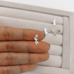 Piercing haste 3 flores detalhe zircônias 12mm orelha direita | Mya Prata