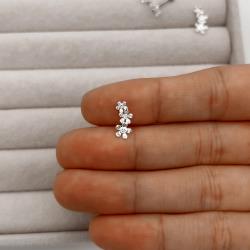 Piercing haste 3 flores detalhe zircônias 12mm orelha esquerda | Mya Prata