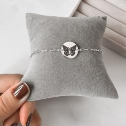 Pulseira entremeio medalha dupla face borboleta e frase 15mm | Mya Prata