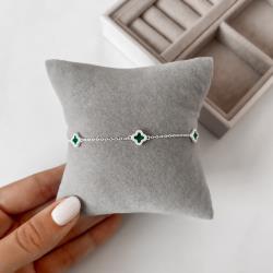 Pulseira entremeios trevos malaquita com cravejado 7mm | Mya Prata