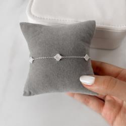 Pulseira entremeios trevos madrepérola borda cravejada 7mm | Mya Prata