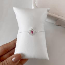 Pulseira entremeio zircônia gota rosa com cravejado 13mm | Mya Prata