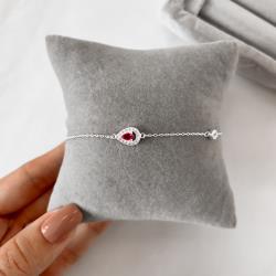 Pulseira entremeio zircônia gota cereja com cravejado 10mm e zircônia redonda 4mm | Mya Prata