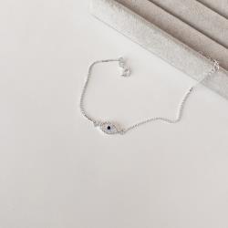 Pulseira entremeio olho grego navete cravejado 11mm v15 16cm com alongadora | Mya Prata