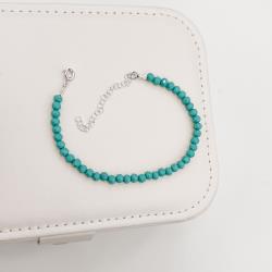 Pulseira cristal turquesa 4mm 16cm com alongadora | Mya Prata