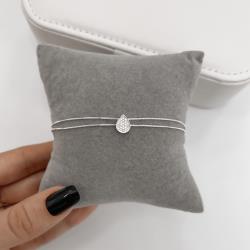 Pulseira entremeio gota cravejada 9mm corrente dupla 17cm com alongadora | Mya Prata