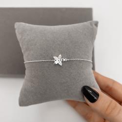 Pulseira entremeio flor detalhe cravejado 11mm | Mya Prata