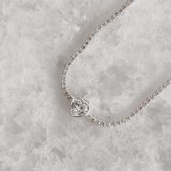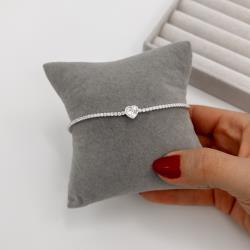 Pulseira Riviera 1.9 com zircônia coração cristal 16cm com alongadora