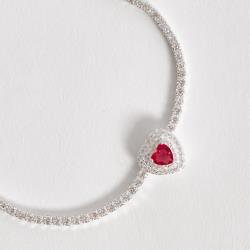 Pulseira Riviera 2.1 zircônia coração rubi com cravejado 16+4cm