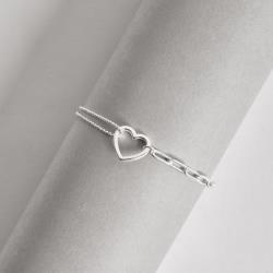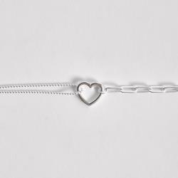Pulseira entremeio coração vazado 14mm correntes bolinhas e cartier 15+5cm | Mya Prata
