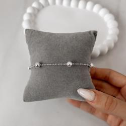 Pulseira corrente cadeado com 5 bolas 6mm | Mya Prata
