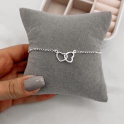 Pulseira entremeio dois corações vazados 16mm | Mya Prata