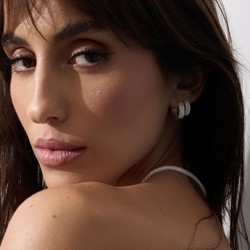Trio argolas click 11,13 e 15mm vazada cravejada | Mya Prata