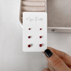 Trio zircônia redonda 3, 4 e 5mm vermelho | Mya Prata