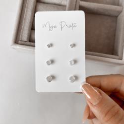 Trio zircônia redonda 3, 4 e 5mm cristal embutida | Mya Prata