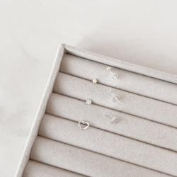 Trio pérola, zircônia e coração vazado | Mya Prata