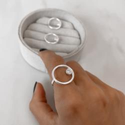 Descrição: Anel círculo vazado com zircônia fabricado(a) em prata