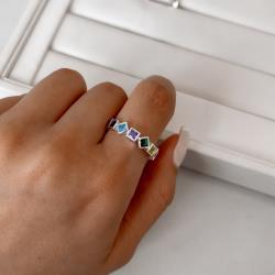 Anel zircônias losango e quadrada coloridas