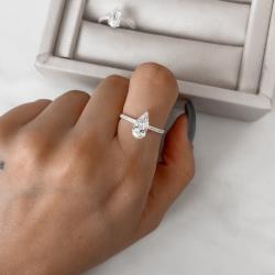 Anel solitário zircônia gota detalhe cravejado | Mya Prata