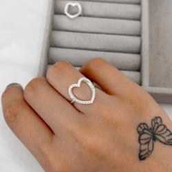 Descrição: Anel coração vazado cravejado cristal fabricado(a) em prata