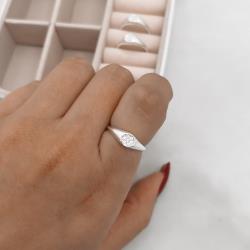 Descrição: Anel detalhe botão cravejado fabricado(a) em prata