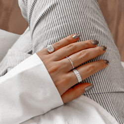 Descrição: Anel torcido com zircônias quadradas fabricado(a) em prata