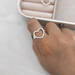 Descrição: Anel coração vazado cravejado 16mm fabricado(a) em prata