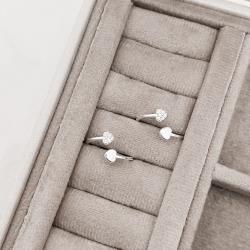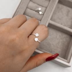 Anel fino corações liso e cravejado regulável P | Mya Prata