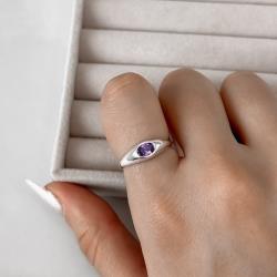 Descrição: Anel zircônia oval ametista fabricado(a) em prata