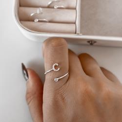 Anel letra C cravejada e zircônia regulável P | Mya Prata