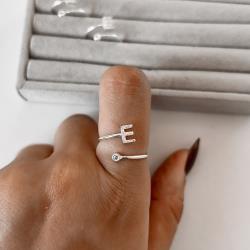 Anel letra E cravejada e zircônia regulável P