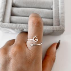 Anel letra G cravejada e zircônia regulável P | Mya Prata