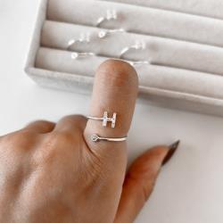 Anel letra H cravejada e zircônia regulável P | Mya Prata