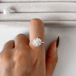 Descrição: Anel flor cravejada 15mm fabricado(a) em prata