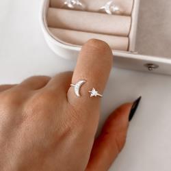 Anel lua com zircônias e estrela regulável P | Mya Prata
