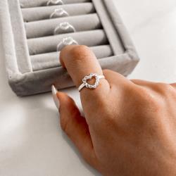 Descrição: Anel coração cravejado fabricado(a) em prata
