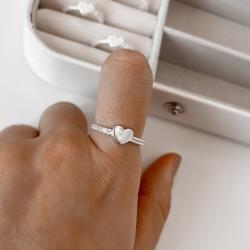 Anel coração com cravejado lateral