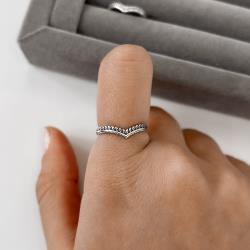 Descrição: Anel V desenhado envelhecido fabricado(a) em prata