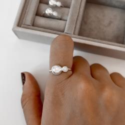 Anel 2 bolas lisa e cravejada | Mya Prata